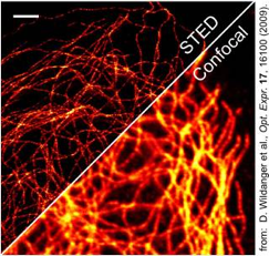 The new technique was developed jointly with the inventor of STED microscopy, Prof. Stefan Hell from the MPI for Biophysical Chemistry, together with Dr. Johann Engelhardt and Dr. Matthias Reuss from the Optical Nanoscopy Department of the German Cancer Research Center (DKFZ) as well as Dr. Volker Westphal and Dr. Lars Kastrup from the MPI for Biophysical Chemistry. The invention has been patented and licensed by Max Planck Innovation and the DKFZ Office of Technology Transfer.