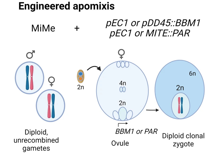 Figure 1 By pairing MiMe with BBM1/PAR expression, clonal progeny can be obtained that represent synthetic apomicts.