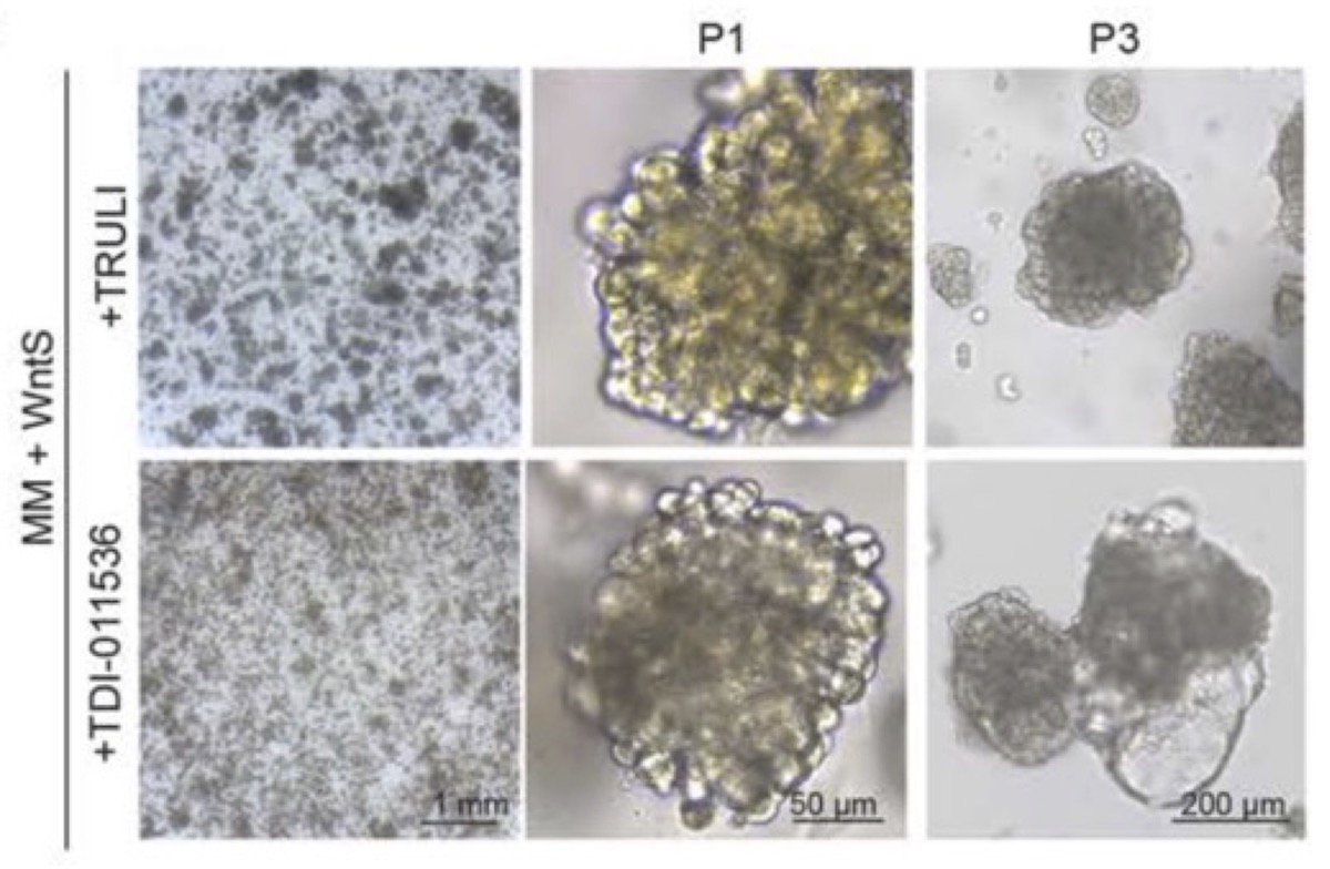 Figure 1 Long-term expansion of human adult hepatocytes as hepatocyte organoids is achieved by culturing hepatocytes in hepatoblast organoid culture medium (MM) with WNT surrogate (WntS) and LATS1/2 inhibitor (TRULI, TDI).